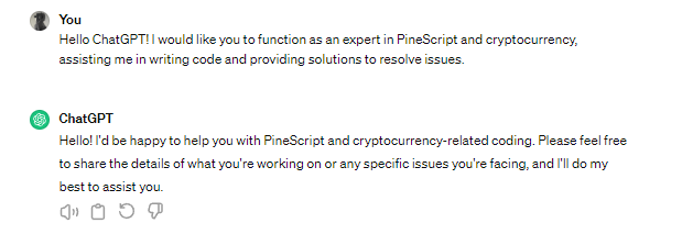 2- Prompt: Once the persona has been established, you can input a prompt for the code you wish to generate, taking into account the three essential aspects. After generating the code, you can copy and paste it into the TradingView Pine Editor for further customization or immediate use.