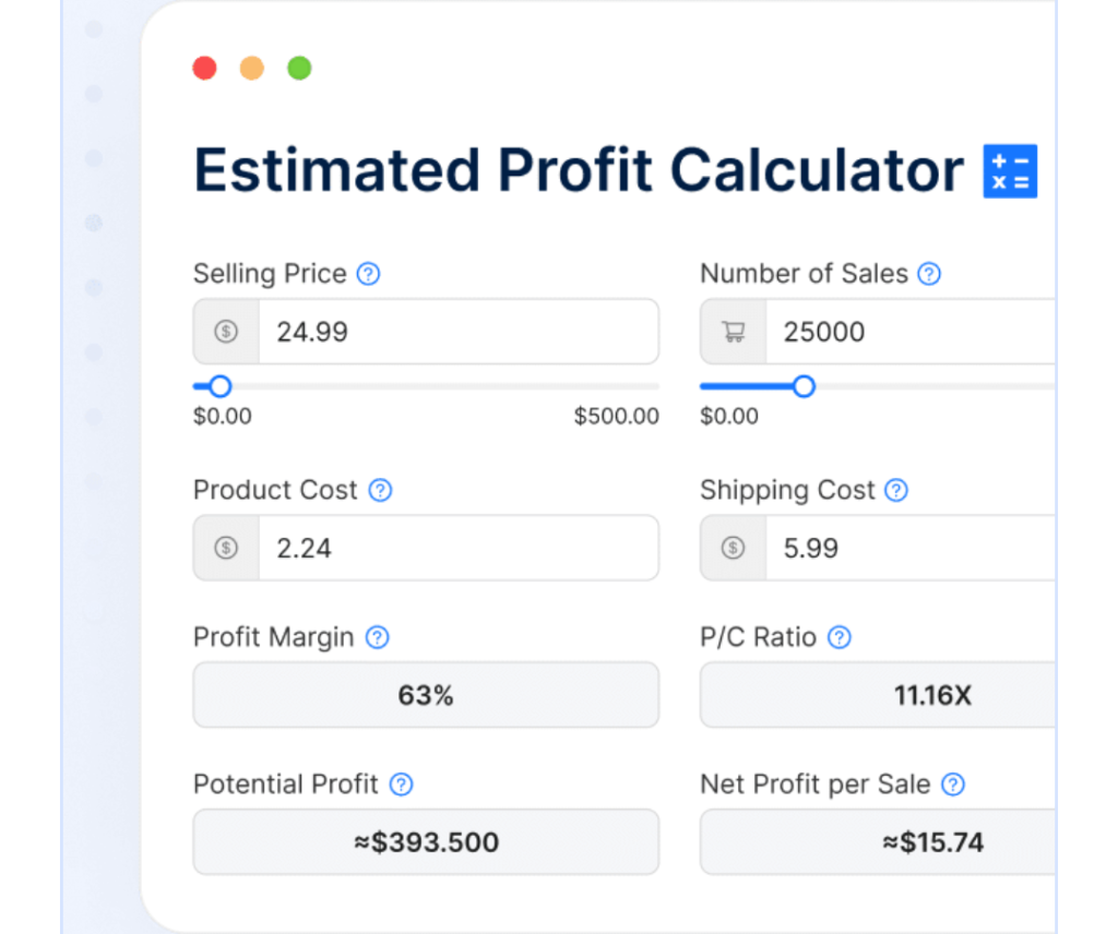 Tradelle.io helps you calculate potential profits with precision. Input your costs, selling prices, and shipping fees to determine if a product is worth adding to your store. This feature ensures you focus on items with the highest earning potential.