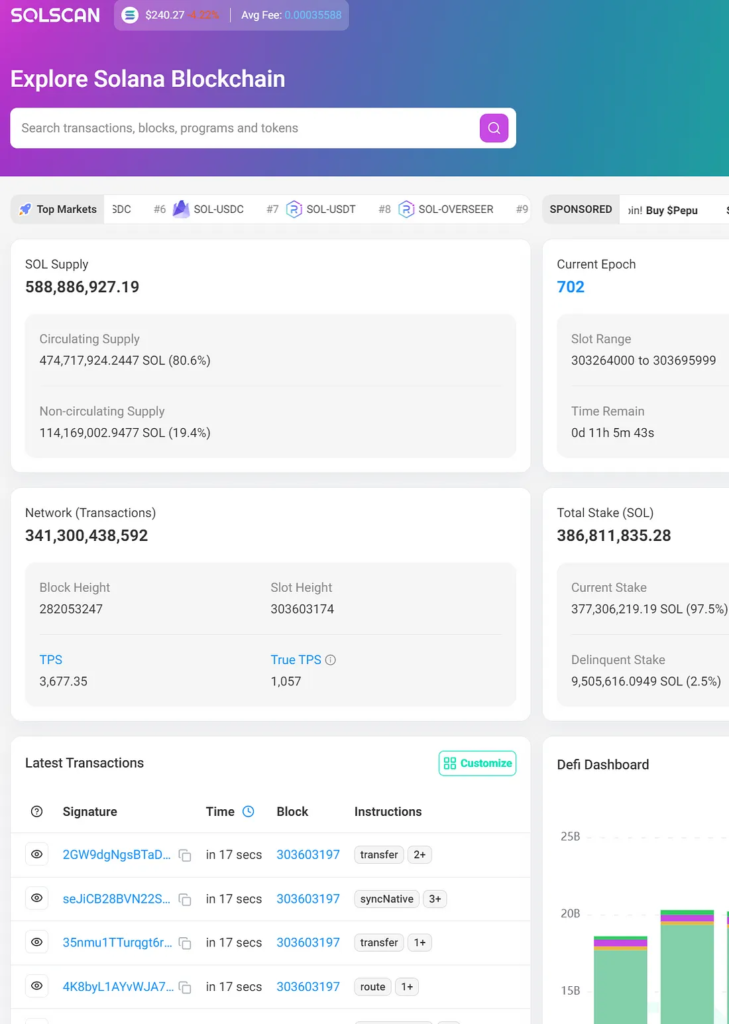 - Solscan, for instance, is a blockchain explorer tailored to the Solana network. It enables users to track wallet activity, review transaction histories, and monitor token movements.